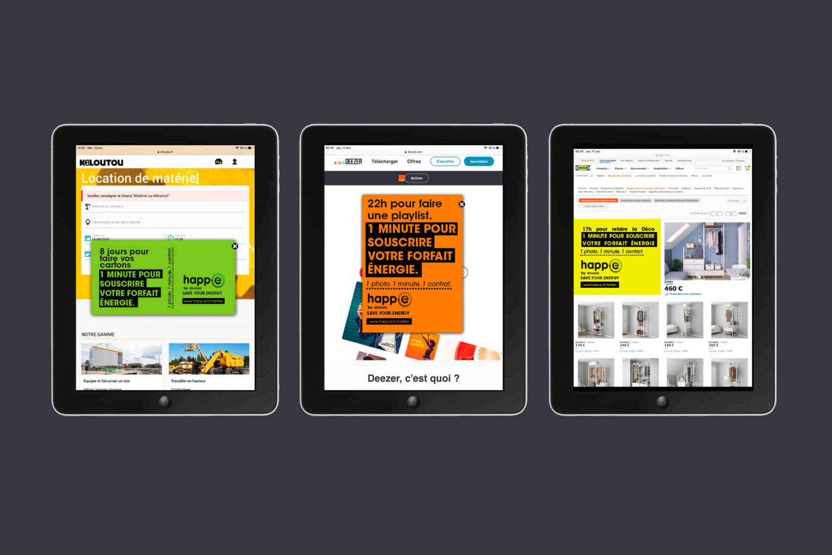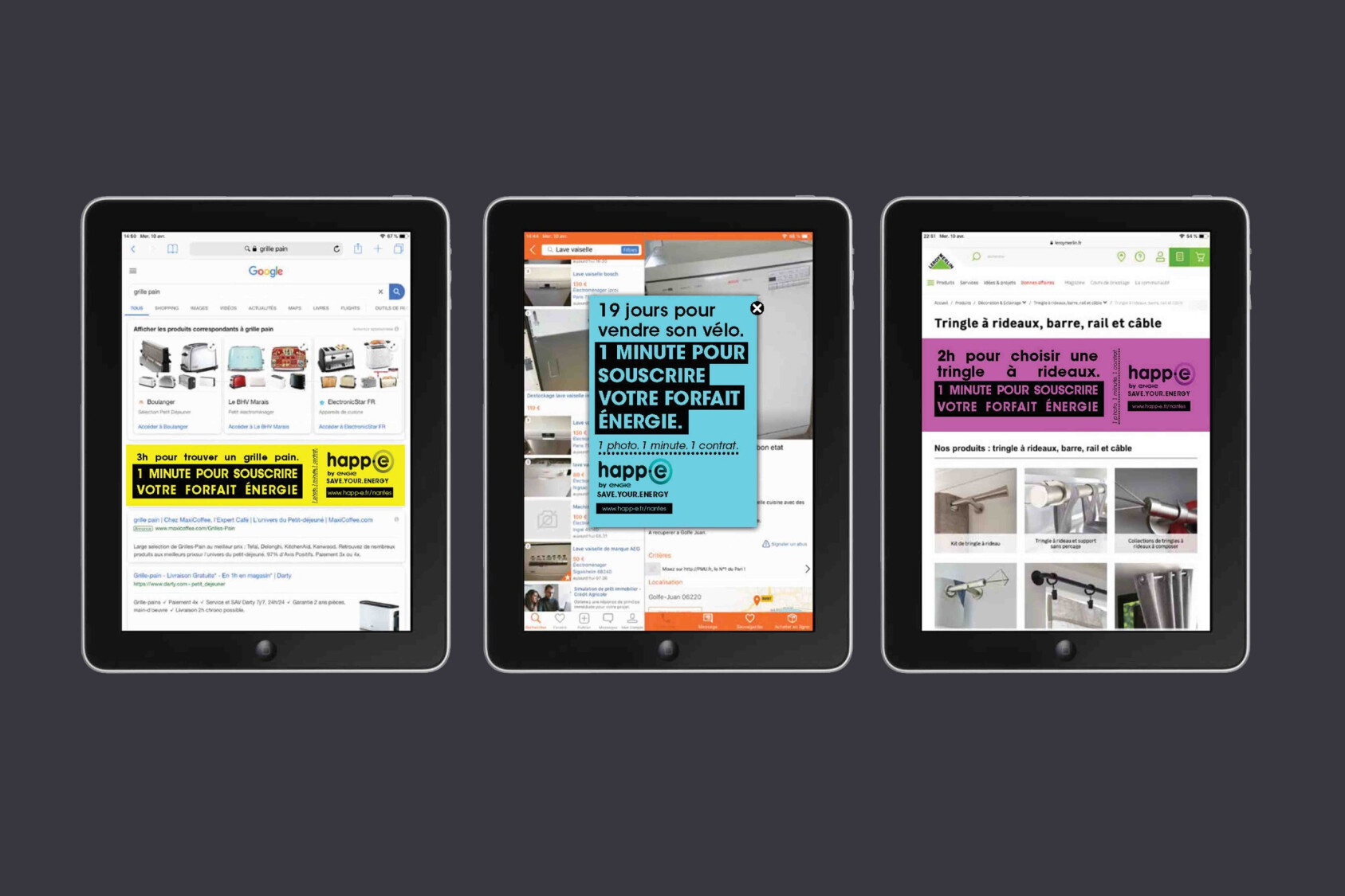 happ-e by ENGIE était la marque lowcost du groupe. Suite à une modification de la législation sur le prix de l’énergie, ce positionnement est devenu caduque. Repositionner la marque sur le segment des 18-35 ans a été la réponse. Avec des vraies preuves, des vraies différences : nous avons inventé l’Insta-inscription qui permet de souscrire quasi immédiatement. Il suffit d’envoyer une photo de son compteur sur Instagram pour recevoir une proposition de contrat en 1 minute. Finis les galères et les formulaires. Sur cette première innovation nous avons construit la campagne de communication et mieux : l’ADN de la marque, qui depuis, met en avant chaque année une inno pour faciliter la vie de cette cible qui s’installe et se réinstalle.